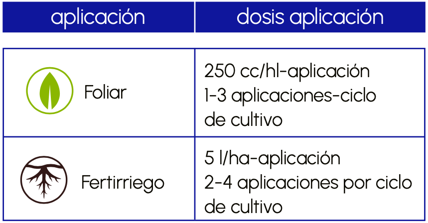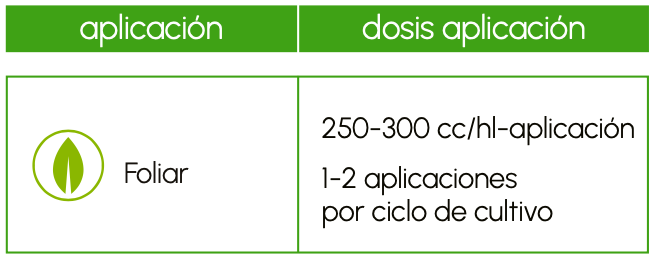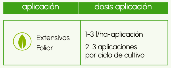 Su aplicación da como resultado un mayor vigor, actuando como antiestrés y aportando a la planta nutrientes y bioestimulantes esenciales que favorecen el cuajado; como consecuencia se incrementa el rendimiento y la calidad de las cosechas. Es especialmente recomendado su uso en cultivos extensivos (cereales, algodón, patata, etc.).