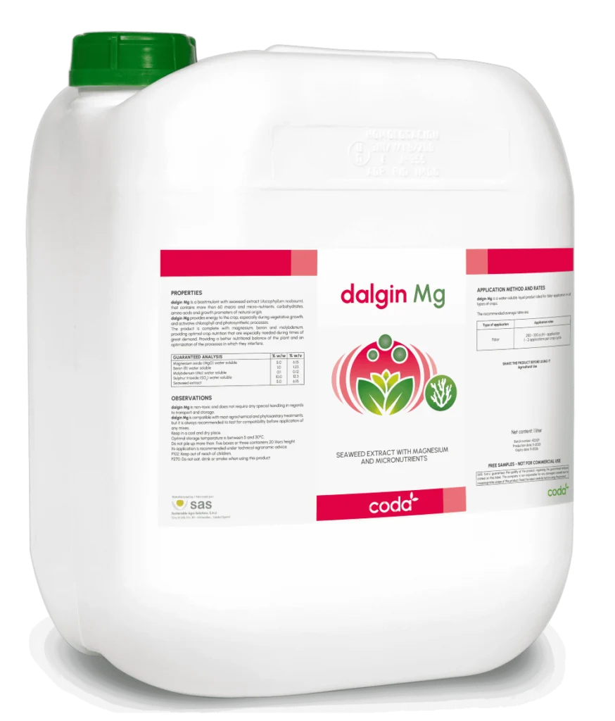 Bioestimulante a base de extracto de Ascophyllum nodosum, alga marina que incluye de forma natural más de 60 macro y micronutrientes, hidratos de carbono, aminoácidos y promotores de crecimiento de origen natural. Aporta vitalidad y energía al cultivo especialmente durante el desarrollo vegetativo y activa la clorofila y los procesos fotosintéticos. El producto se completa con magnesio, boro y molibdeno que permiten una óptima nutrición de cultivos especialmente exigentes en estos nutrientes en los momentos de mayor desarrollo del cultivo.